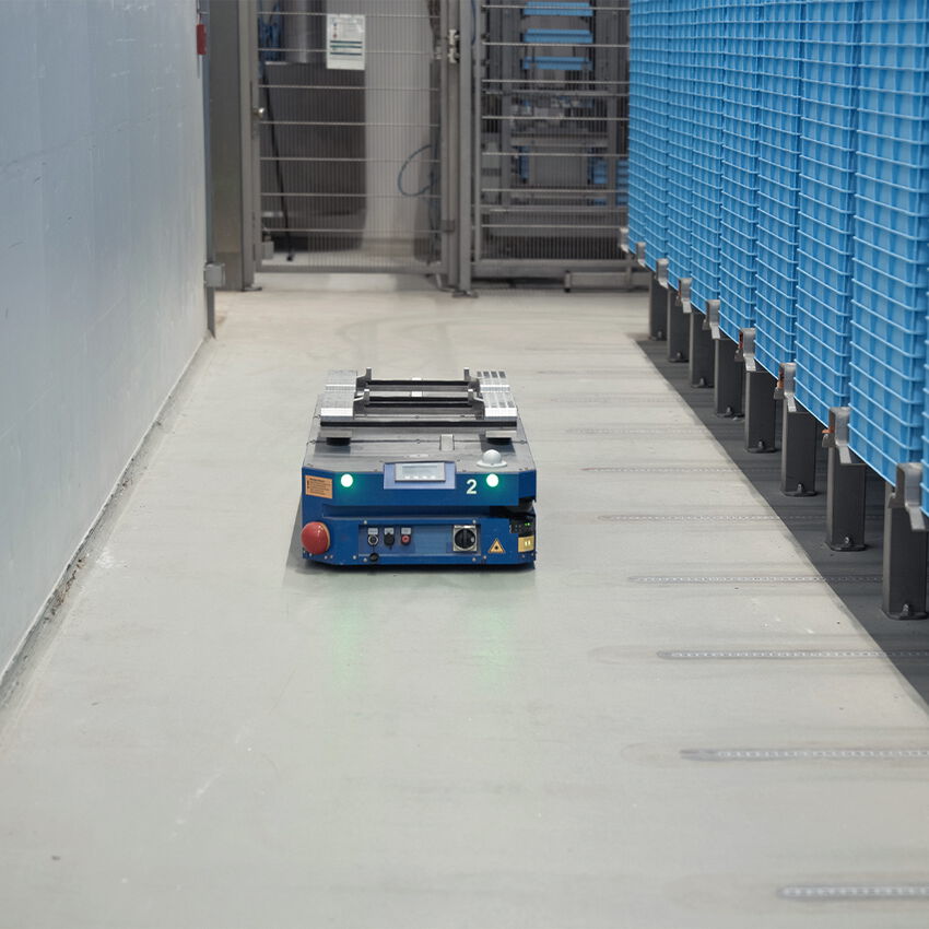Unsere fahrerlosen Transportsysteme integrieren sich nahtlos in bestehende Prozesse – ganz ohne Umbauten. Modular erweiterbar, anpassungsfähig und optimal für dynamische Produktionsumgebungen.