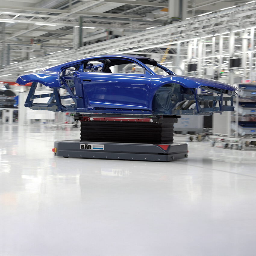 Flexible Montagelinien, smarte Transportlösungen und vernetzte Systeme – wir bringen Bauteile und Komponenten just-in-time an den richtigen Ort in der Fahrzeugproduktion.