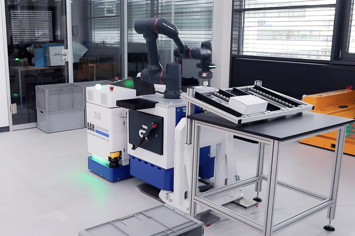 In vielen Produktionsumgebungen arbeiten fahrerlose Transportsysteme (FTS / AMR) und Roboterarme nebeneinander – aber selten wirklich miteinander. Dabei liegt genau darin enormes Potenzial: Werden Transport und Handhabung intelligent kombiniert, entsteht ein mobiles Robotermodul, das Aufgaben flexibel, autonom und effizient abarbeitet.
